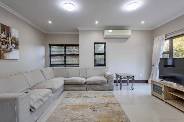 Modern four-bedroom home in Hilltop Estate. On entrance this double level home offers an open plan living and dining area, large kitchen with separate scullery, and an additional seating area that opens out onto the level garden with pool. An office sits on this level.