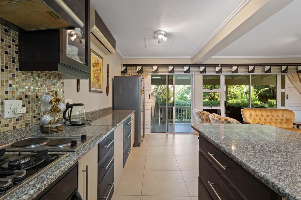 The air-conditioned, en-suite master bedroom is situated on the upper level, featuring an enclosed balcony, a skylight and a fully equipped bathroom. Two bedrooms sit on the lower level and share a bathroom. Additional features include an automated double garage with laundry fittings and additional storage, bug and monkey screens, JoJo tank, staff toilet and courtyard. Contact the HUNT team to view.