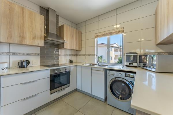 DUAL MANDATE | This modern, two-bedroom, two-bathroom apartment is located on the top floor of Manor Gardens. The entrance leads directly into an open-plan kitchen and living area, which opens out onto a covered balcony.