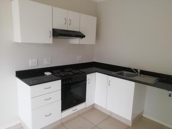 Compact 1 bedroom starter apartment with an open plan lounge and kitchen fitted with a hob, extractor and oven leading to a covered balcony. Ensuite bathroom with a spacious shower. A carport and an open parking bay.