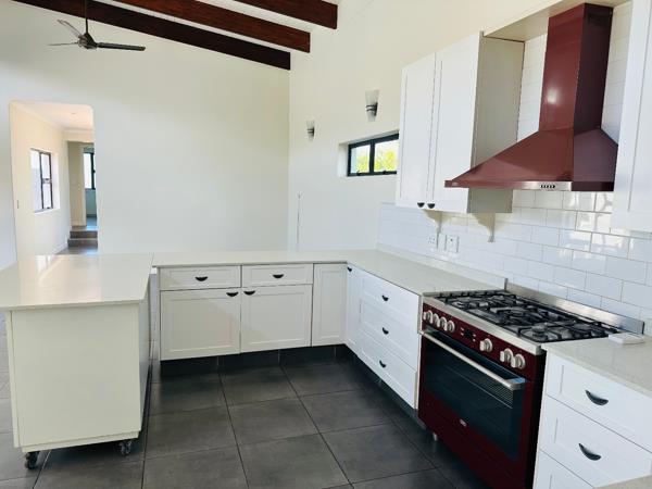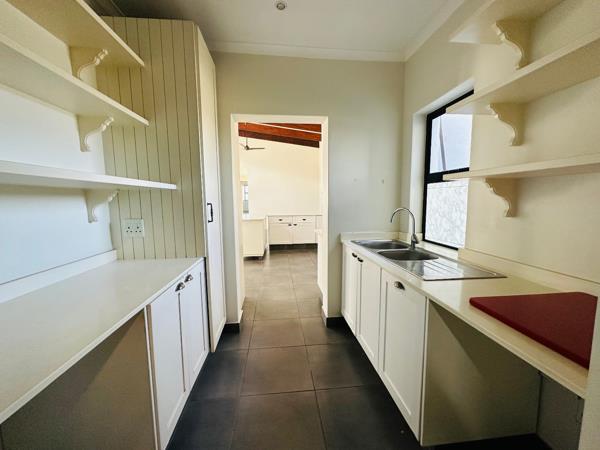 Welcome to this exceptional modern residence, nestled within the prestigious Palm Lakes Estate on the renowned KwaZulu-Natal North Coast. This remarkable home showcases a newly crafted kitchen, meticulously appointed with a top-of-the-line Smeg 900cm stove. The kitchen seamlessly transitions into a well-equipped scullery, accommodating three appliances and offering convenient access to a spacious, tiled double garage.