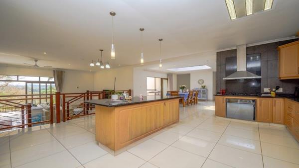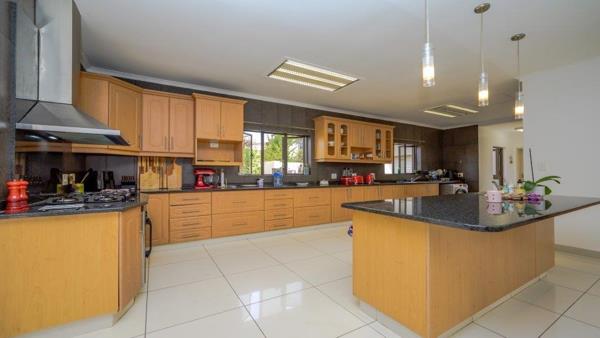 Inside, the home impresses with high doorways, a skylight over the dining area, and a sunken lounge that adds character. The enormous kitchen boasts a central island, prep bowl, scullery, and space for a double-door fridge ideal for anyone who loves to cook and entertain.
