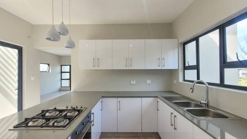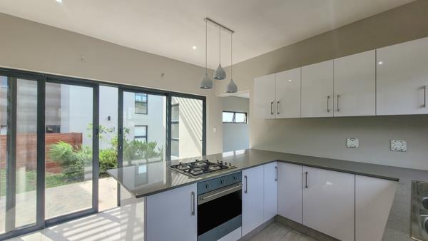 The Kitchen has ample storage space with sliding doors to a small patio.