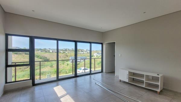 The lounge is light and has sweeping estate views. There is a small balcony extending from the lounge.