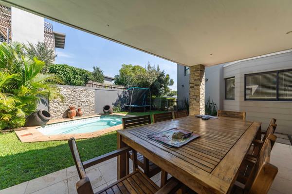 Outside, youll love the covered entertainment patio overlooking the private garden and sparkling pool the perfect space for weekend braais, casual get-togethers, or simply kicking back after a busy week.