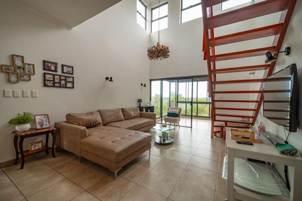 Double-volume ceilings and generous windows enhance the lounge, bathing the space in natural light and adding to the inviting, airy atmosphere.