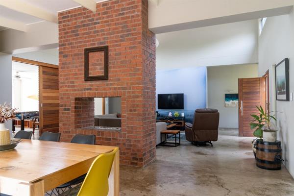 Entry into this extra large single-level family home is over an attractive koi pond with concrete stepping stones. The welcoming high ceilinged lounge has several striking features including clerestory windows that flood the space with natural light, and an exposed brick fireplace that separates the lounge from the open plan dining room and kitchen. The generously sized kitchen boasts windows on two sides, and has a large centre work islandinformal eating area, which interacts with the dining room. It also has a separate scullery plus a pantry that leads out onto an outdoor courtyard. Large sliding doors link the dining room to the private outdoor courtyard with a firepit.