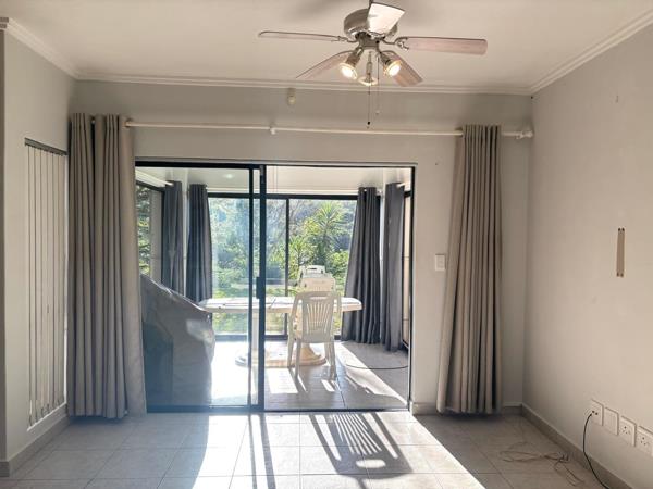 The apartment boasts a generously sized bedroom and a bathroom equipped with a spacious walk-in shower. Floor-to-ceiling windows flood the space with natural light and provide picturesque garden and birdlife views.