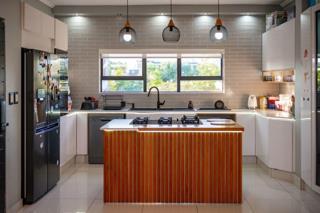 Discover the elegance of this beautiful gym apartment, where stylish finishes meet airy, open spaces. This stunning residence features a modern open-plan kitchen equipped with built-in cupboards and a gas stove, perfect for culinary enthusiasts. The lounge area seamlessly extends to a patio, offering breathtaking views of Palm Lakes.