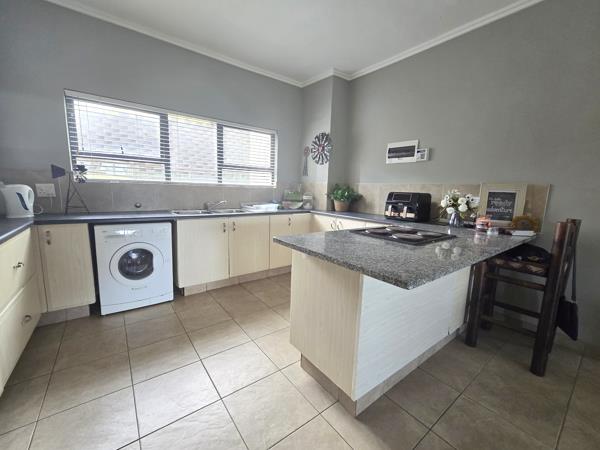 The kitchen is of an open concept combined with the living area. Outdoors, a covered balcony of which displays a picturesque view of the greenbelt.