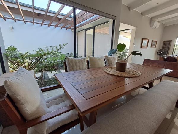 Step into effortless elegance with this modern 3-bedroom, 2-bathroom home in the sought-after Palm Lakes Family Estate. Designed for contemporary living, the open-plan lounge, dining area, and sleek white kitchen with quartz countertops create a seamless flowperfect for family life and entertaining. Enjoy direct access from the garage into the kitchen, making daily routines a breeze. Natural light pours in through expansive glass windows and a charming atrium. The spacious, level garden offers ample room for a pool and pets, while the undercover entertainment area with built-in braai sets the stage for unforgettable gatherings. This is more than a homeits a lifestyle.
