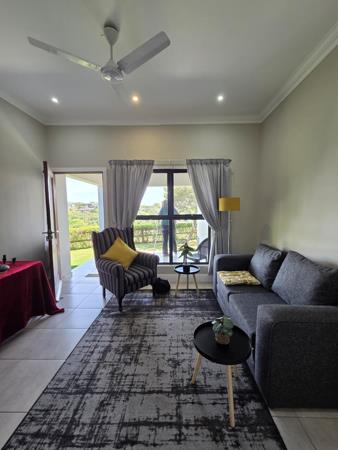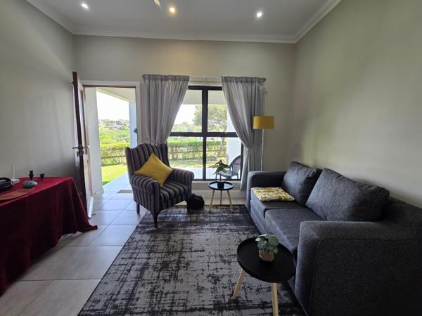 As you step inside, you are greeted by an open-plan kitchen with modern finishes, flowing seamlessly into the spacious living room. Large sliding doors open to a covered patio and private garden area, where you can relax and soak in breathtaking views of the estate. Both bedrooms are generously sized ,each with its own en-suit bathroom featuring sleek, contemporary finishes.