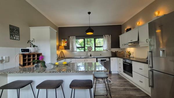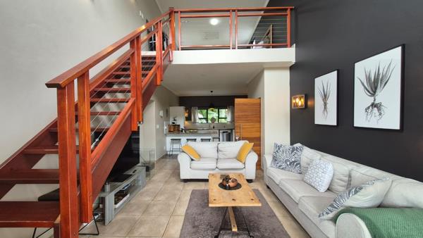 Stairs lead up to the loft, which can be used as an additional bedroom or office space. The loft also opens up onto a lovely tiled patio with breathtaking views of the dam and the communal gardens, perfect for entertaining.