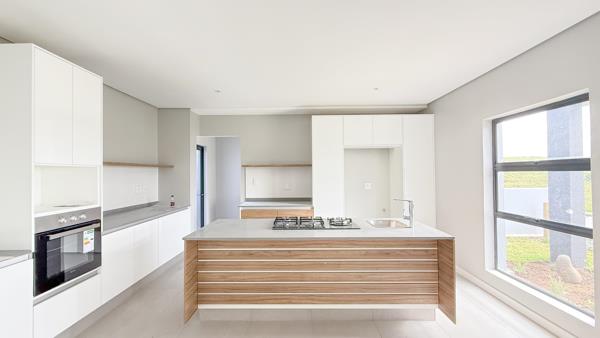 There are three bedrooms and two bathrooms with a double garage. The living space is open plan with a serarate scullery.
