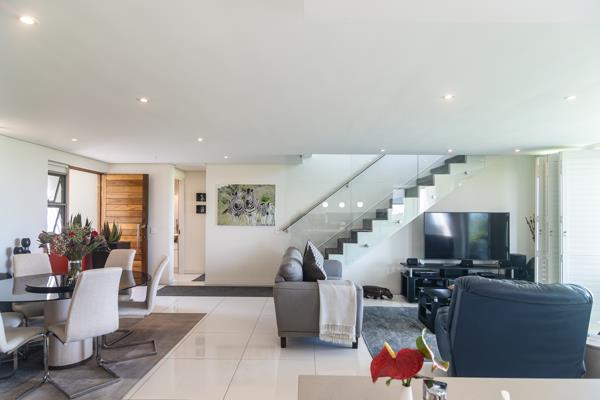 The landscaped garden enjoys the most sunlight along the strip of similar properties within the development. The separate scullery off the kitchen leads directly into the over-sized double garage which includes a laundry and staff WC. One of the three bedrooms is located on ground level ensuring that single-level living is possible.