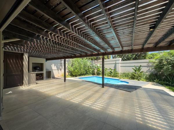 With an expansive outdoor covered verandah with a built in braai adjoining a sparkling swimming pool, attention to detail is evident in every facet of this sleek, single level 3 bedroomed home.