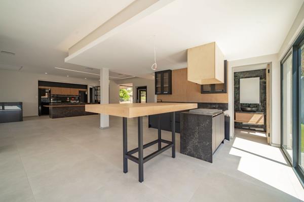 4 Spacious bedrooms each with en suite bathrooms & air conditioning which includes a guest suite and double volume state-of-the-art main bedroom with custom made fitted cabinetry and full luxury en suite bathroom. Access from the main bedroom onto a big private patio/garden with a beautiful water feature which overlooks stunning views. Gourmet fitted kitchen with Caesar stone counters & integrated appliances. Separate scullery. Double volume family TV lounge, study & kitchenette.