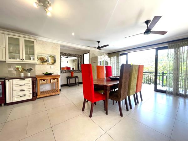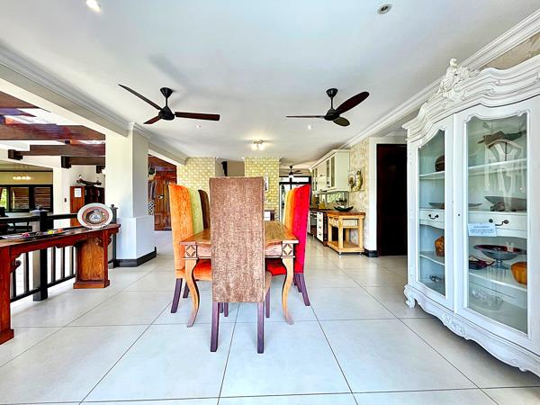 To one side of the entrance, the spacious open-plan kitchen and dining area flow seamlessly through stack-away doors onto an elevated patio ideal for effortless indoor-outdoor living. On the opposite side, large and inviting lounge provides the perfect space to relax or entertain, opening out to a generous patio with captivating views of Holy Hills lush conservation area and glimpses of the ocean beyond.