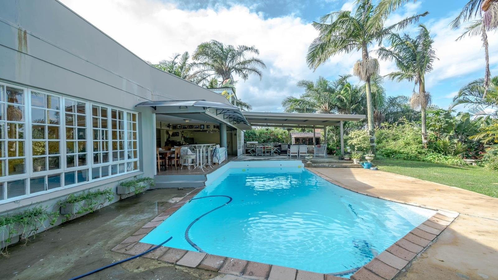 The living is easy in this generously proportioned farm-style home situated just a stone''s throw away from Salt Rock main beach. The home is over 500m2 and is set on two levels. Downstairs you will find an entrance hall, study, farm-style kitchen, scullery, 2 lounges, dining room, inviting pub area all leading onto an alluring pool area with magnificent forest views.