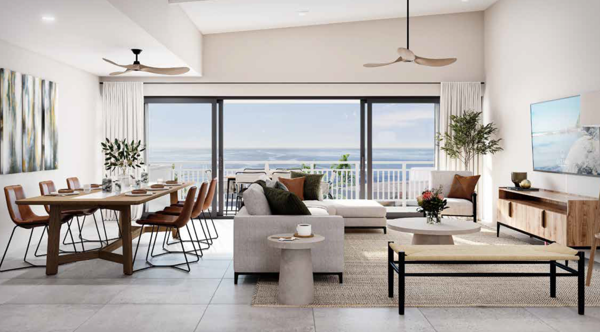 Uncompromising quality reverberates throughout the central living, dining and entertainment areas and encourages you effortlessly out towards the charming undercover outdoor space with its breathtaking panoramic ocean view. The modern gourmet kitchen, with built-in wide gas hob, is harmoniously integrated into the living area.
