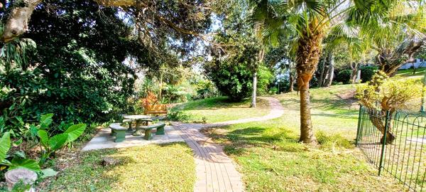 Stunning forest like gardens, walkways, benches to sit and enjoy this paradise, a swimming pool and a very spacious apartment with an enclosed balcony is a must see! Three spacious bedrooms, two bathrooms and a very large living /dining area. The kitchen has granite tops and a separate scullery / laundry. Entrance to the apartment has an enclosed secure lobby and an entrance hall. The enclosed balcony creates a lovely living area with stack doors. One lock up garage directly below this first floor apartment for easy access, At the front door you have a few steps, back door is ground level. Situated in a secluded area with no traffic noises at all, yet a short drive to the beach and the rest of town.