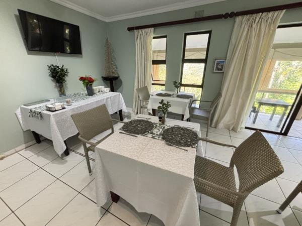 Guests are welcomed into a tranquil environment where they can relax around the communal swimming pool and outdoor braai area, surrounded by lush, landscaped gardens. Breakfast is prepared in the on-site kitchen and enjoyed either in the dining area or privately on suite balconies, enhancing the intimate and relaxed guest experience.