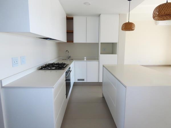 Step inside to an inviting entrance hall that flows seamlessly into an open-plan lounge and kitchen, featuring a centre breakfast island, gas hob, electric oven, and sleek tiled finishes throughout. Natural light floods in through large sliding glass doors, offering stunning sea views and opening onto a private patio and surrounding garden the perfect setting for morning coffee or evening sundowners.