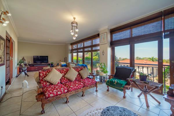The Grand Dame of the Estate . Commanding a prime position within a secure estate in central Ballito, this elegant home is a standout residence offering generous proportions, timeless design, and sweeping views over the estate with glimpses of the distant sea. The spacious living area flows seamlessly into an enclosed patio, creating an all-weather space ideal for entertaining or relaxing while enjoying the views. High ceilings throughout the home enhance the sense of space and allow for natural airflow, maintaining a cool and comfortable environment.
