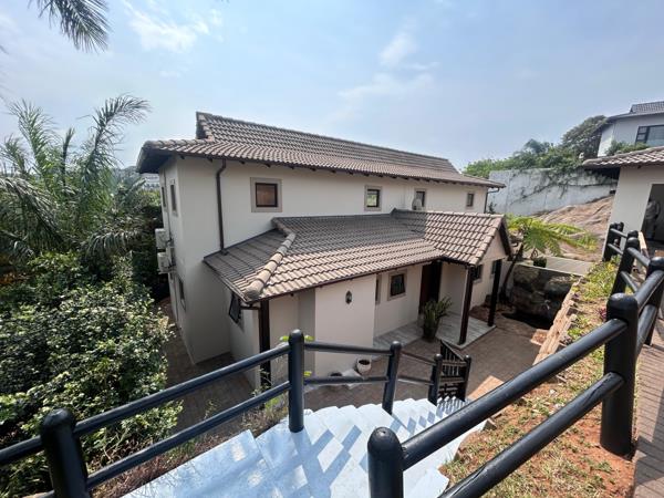 Upstairs, youll find two additional bedrooms that share a stylish family bathroom with a bath, shower, and double vanity. A spacious pajama lounge adds an extra living space, perfect for relaxing or as a childrens play area. Each upstairs room opens onto a balcony through sliding doors, offering elevated views over the green valley, enhancing the homes serene setting within this secure estate.