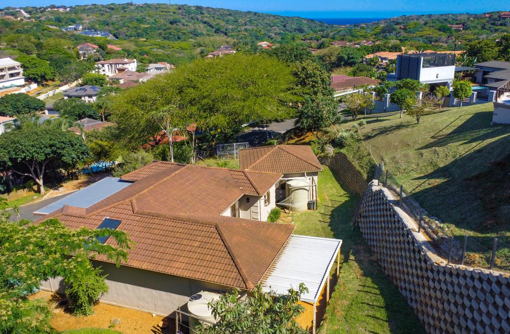 The interiors are warm and practical, with a well-laid-out kitchen linking easily to the lounge and dining spaces, creating a central hub for family life or entertaining. Generous rooms and versatile spaces allow for comfort and flexibility, with the main suite opening to the outdoors for a touch of retreat-like living. Outdoors, a level garden provides ample space for pets, children, or future extensions, while the covered patio offers a natural setting for entertaining or simply enjoying the scenery. The addition of JoJo tanks with a pump, a solar geyser, and air-conditioning ensures that the home is as functional as it is inviting. With its thoughtful blend of practicality, serene valley setting, and distant ocean views, this property offers a rare balance of lifestyle and convenience on the North Coast.