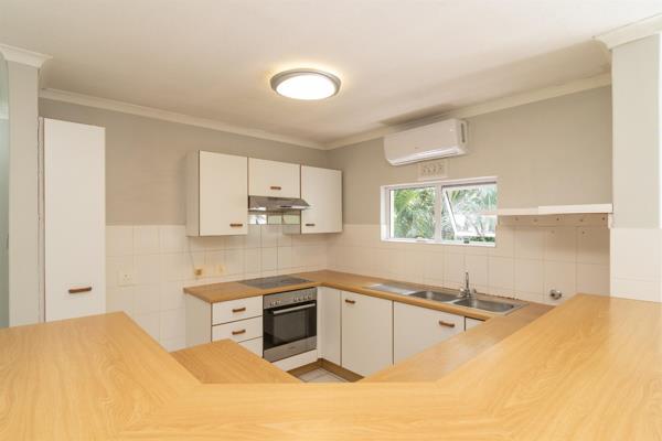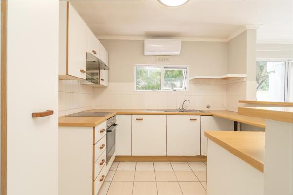 The layout encompasses an integrated light filled open plan living area with a chic, modernised air-conditioned kitchen that provides a tranquil outlook. The kitchen is well sized with ample cupboard and counter space and has a double sink. The adjoining lounge/dining are opens to the outdoor covered verandah area