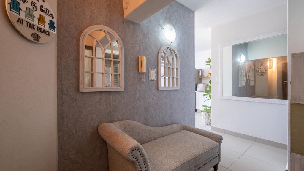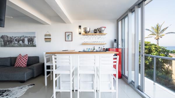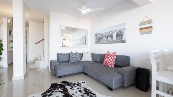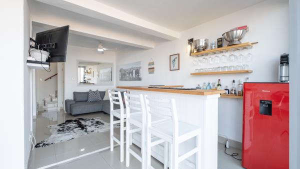This charming three-bedroom duplex apartment is your ideal coastal escape. Designed for comfort and style, the spacious open-plan kitchen, lounge, and dining area flow seamlessly onto a pub area that showcases spectacular ocean vistas perfect for morning coffee or evening sunsets. The well-appointed kitchen features a Bosch oven and hob, ample cupboard space, and a functional layout ideal for everyday living and entertaining. Upstairs, youll find three generously sized bedrooms. The serene master suite includes a private en-suite bathroom, while two of the bedrooms boast magnificent sea views.