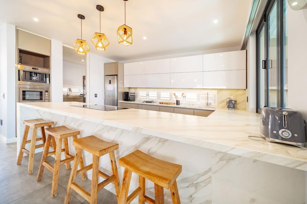 Incredible style - Incredible splendour. The magnificent spoils this four-bedroom coastal home has to offer will impress - if not astound - you. Amazing seaviews from various levels in this home is the added thrill, a classic seaside backdrop. Located in an upmarket, modern family-oriented estate, this exquisitely fitted and finished home offers all the frills, such as: