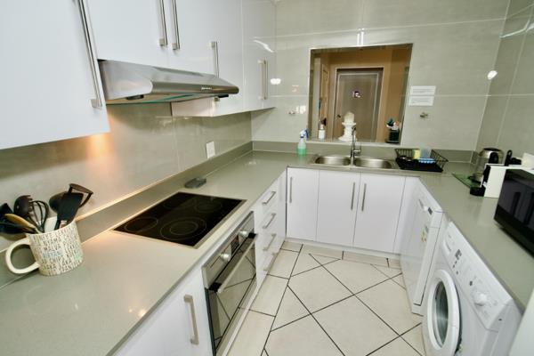 Additional features include a lock-up storeroom with space for a tumble dryer, basement parking, and the unit is offered partially furnished (details available from the agent at viewing). The complex also offers a sparkling pool and direct beach access.