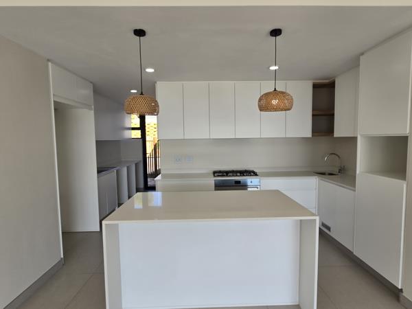 Single story ultra modern home featuring 2 bedroom 2 bathroom with an open plan kitchen with scullery, dining and lounge and patio with sea views.