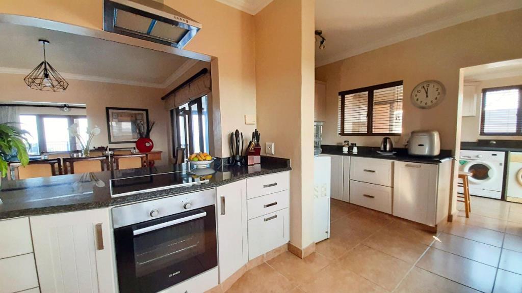 A great investment opportunity to run as a guest house or perfect for the extended family. The house of 725m2 is built on a 1434m2 piece of land, perfectly designed to take advantage of the beautiful sea and surrounding views. Modern and upmarket, featuring an open plan lounge area leading out to a wooden deck with a stunning rim-flow pool overlooking the ocean. The well-designed kitchen has ample cupboard space and has easy access to all the bedrooms.