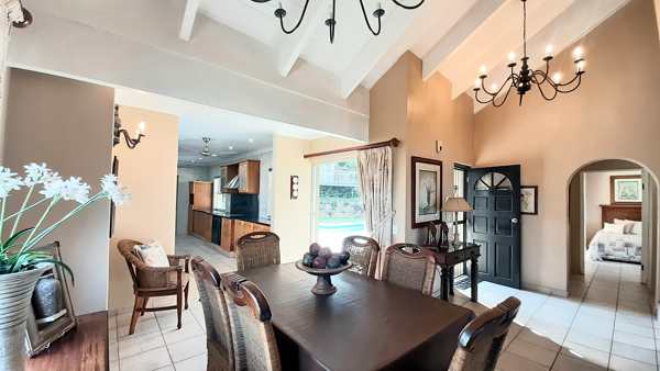A long, private driveway leads to a spacious double garage and ample off-street parking. Upon entry, you''re welcomed into a dedicated entertainment area complete with a built-in bar, pool table, and views over the protected private swimming pool and built-in braaiideal for hosting and relaxation.
