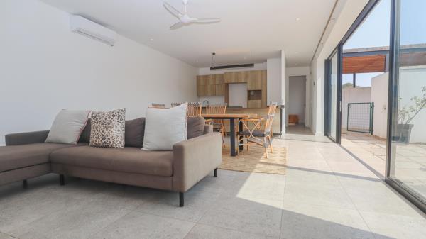 Discover the ease of single-level living in this beautifully designed, pet-friendly home at Elaleni Gardens. With its own private garden and light-filled interiors, this residence combines easy comfort with contemporary style, designed for relaxed coastal living. Designed with ease and versatility in mind, the open-plan living space suits both everyday living and entertaining. The kitchen and dining area sit side by side, creating a natural flow for family meals or casual hosting. The sunny garden extends directly from the living areas through wide sliding doors, offering a seamless setting for both indoor and outdoor living.