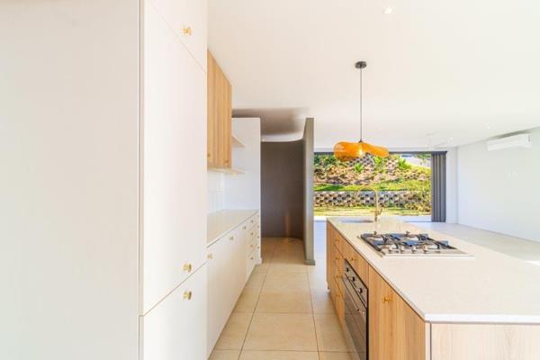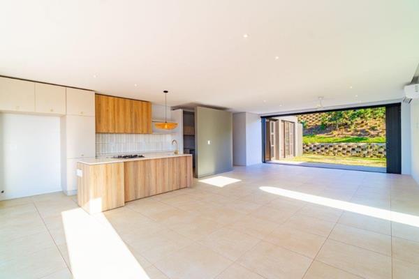 Designed by Blok Architects, this contemporary townhouse is the epitome of luxury living in one of the best and newest security estates that the North Coast has to offer. Featuring floor-to-ceiling stacking doors, the home seamlessly merges indoor and outdoor living to create a light-filled and airy environment.The expansive living and kitchen area (with scullery!) flows effortlessly onto a large balcony, offering sweeping views of the sea and the surrounding estate, perfect for entertaining or al fresco dining. On the opposite side, the living area opens to a small private garden.