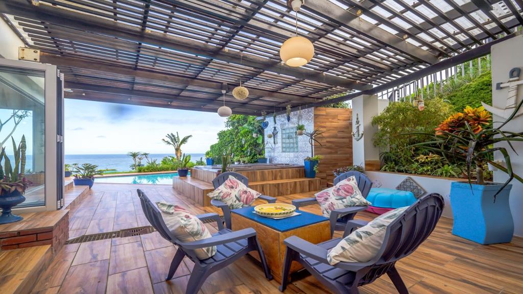 Step into the bright and airy open-plan living area, where stunning sea views create the perfect backdrop. The spacious lounge, dining room, and kitchen flow seamlessly to a fantastic entertainment area, complete with a swimming pool, jacuzzi, built-in stainless steel gas braai, and beautifully manicured gardensperfect for hosting family and friends!