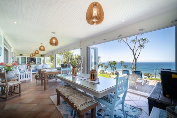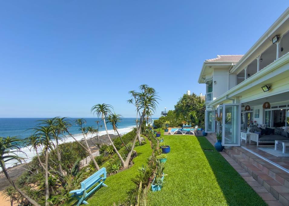 Dining room, family room, formal living room, enclosed patio with pub and 5 sectionalised areas and entertainment area with stacking aluminum doors revealing the stunning ocean views. Additional patio with braai & entertainment area and jacuzzi. Sea facing pool set in tiered garden. Triple auto garages. Direct beach access onto a very private stretch of Sheffield beach. Additional features include: American shutters .Satellite Dishes. Electric fencing, security cameras. 12 solar panels, Braai area. Store room. Staff Quarters.