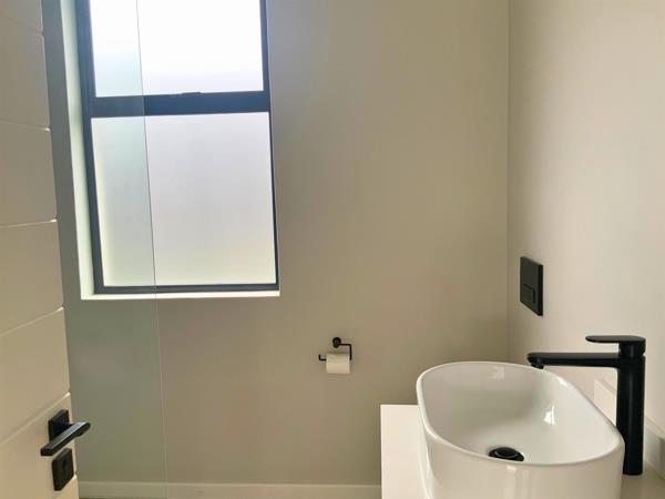 Step inside to find tiled floors flowing throughout, enhancing the clean, contemporary feel of the home. The open plan lounge and dining area seamlessly connect to a beautifully appointed kitchen featuring a SMEG gas hob and oven, full cabinetry, and a separate scullery with water points for all your major appliances, making everyday life and entertaining easy. The living area flows onto a covered patio with built in braai for entertaining opening onto a secure garden.