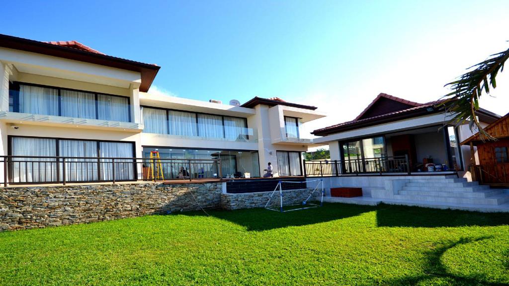 Entry level offers an open plan living area made up of your dinning room, 2 of the 5 lounges, leading onto a large undercover enclosed patio with seamless glass stack-doors, built in gas braai which flows to a deck, pool & boma. A couple of steps will take you to a separate fully fitted entertainment room with bar, and built in braai.