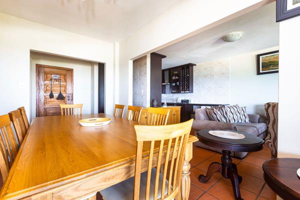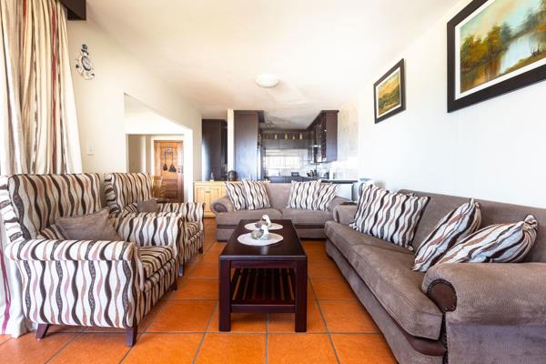 Inside, the apartment offers an appealing layout with spacious adjoining lounge and dining room. Both bedrooms, as well as the lounge and dining area, are fitted with sliding doors that open onto an extra-large covered patio, creating seamless indoor-outdoor flow. The modern upgraded kitchen has been designed for convenience, and includes a double-door fridge, dishwasher, washing machine, tumble dryer and microwave.