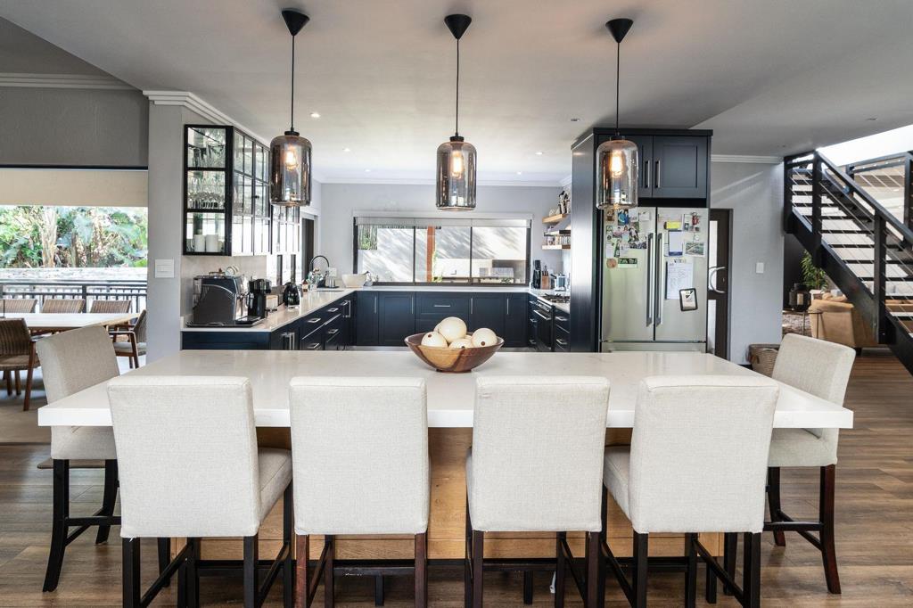 SOLE MANDATE: This beautifully renovated 650 sqm five bedroom home inclusive of a fully fitted studio flatlet and a choice of indooroutdoor spaces for living and entertainingis situated in a secure boutique estate, just 300 metres from the beach.