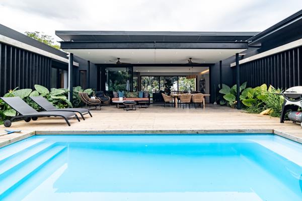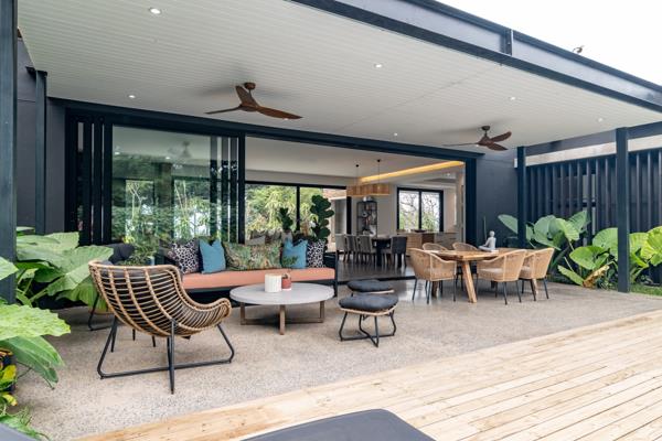 High-end finishes adorn the home, complemented by custom curtains and blinds, elegant wallpapers, and stylish light fittings. The property also boasts a lush, fully established indigenous garden. Special features of this spectacular home include a large triple garage with abundant storage and an office/workshop space, air-conditioning, ceiling fans throughout, and back-up water storage tanks.