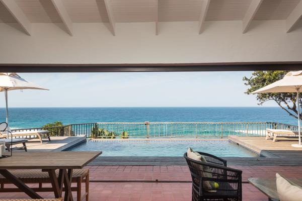 Upon entering the main home, you are immediately greeted by panoramic views of the warm Indian Ocean. The original terracotta tiles paired with the more contemporary interior renovation and furnishings sets the mood for the perfect coastal escape. Relax and entertain in style with two separate living areas, perfect for both intimate family moments and entertaining family and friends. Step outside onto a sprawling deck that seamlessly blends indoor and outdoor living, featuring a rim flow pool that appears to merge with the ocean. A well-appointed kitchen with top-of-the-line appliances, sleek cabinetry, and ample counter space, completes the heart of the home.