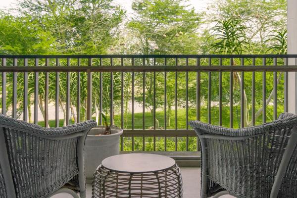 stunning apartment within secure Elaleni Estate. This two-bedroom apartment offers a perfect blend of comfort and convenience. Spacious and light-filled, the living area opens directly onto the covered balcony, creating an ideal space for indoor-outdoor living with lovely greenery views. The master bedroom is complimented with an en-suite bathroom and seamless access to the covered patio. Surrounded by lush greenery and the soothing sounds of nature ensuring privacy and tranquillity. Both bedrooms are well-sized with ample cupboard space. The bathrooms are clean and well maintained with contemporary fixtures. The open plan kitchen is free-flowing through to the dining area and onto an expansive covered balcony.
