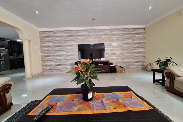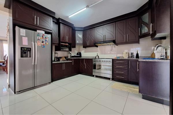 Additional features include a sparkling swimming pool and a double-volume garage accommodating up to four vehicles.