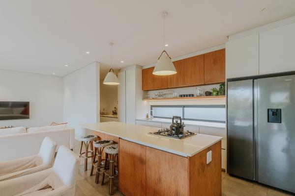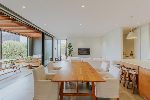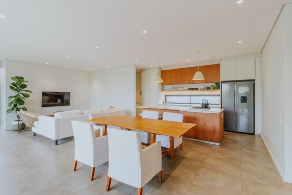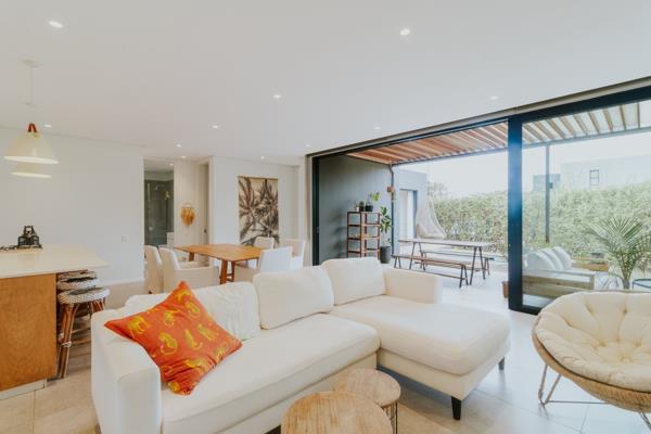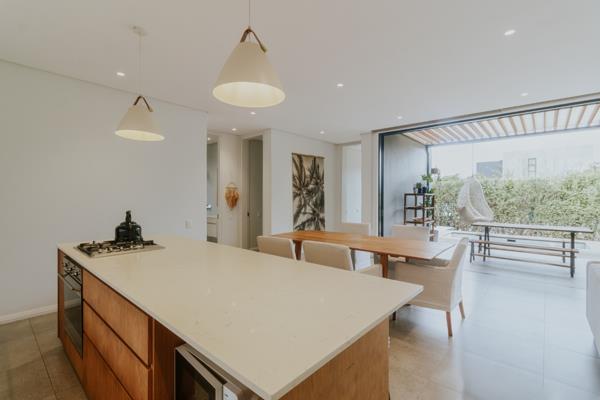 This stylish home welcomes you with an open-plan living and dining area that flows seamlessly into a sleek kitchen, complete with a centre island, gas hob, electric oven, and separate scullery. Large sliding doors open the living space onto a covered patio and entertainment area, perfect for indoor-outdoor living.